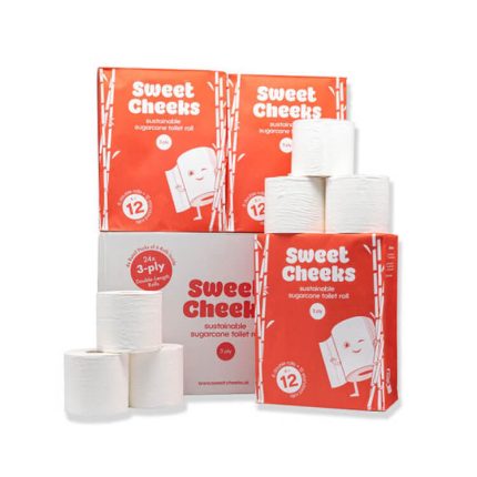 Our 100% sugarcane toilet rolls are eco-friendly, super soft, and twice as long as other brands. Good for you, good for the planet! Made from sugarcane byproduct, our toilet rolls are the most sustainable on the market, decreasing the demand for deforestation. What’s more, they are super comfortable to use on your backside – you know what they say, once you go Sweet Cheeks, you won’t wipe with anything else!